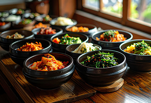 In der koreanischen Küche sind Banchan, kleine Beilagen, fester Bestandteil jeder Mahlzeit. Sie stehen in der Tischmitte und werden von allen geteilt. Kimchi, marinierte Eier, gedünstetes Gemüse oder eingelegte Rettiche bieten Abwechslung und kombinieren verschiedenste Aromen. Im Nahen Osten folgt man einem ähnlichen Prinzip: Mezze, eine Vielzahl kleiner Gerichte, werden gleichzeitig serviert. Hummus, Falafeln, gegrilltes Gemüse oder Taboulé stehen zur Auswahl. In Japan trifft man sich in Izakayas, wo kleine Speisen zu Sake oder Bier gereicht werden. Das spanische Tapas-Konzept